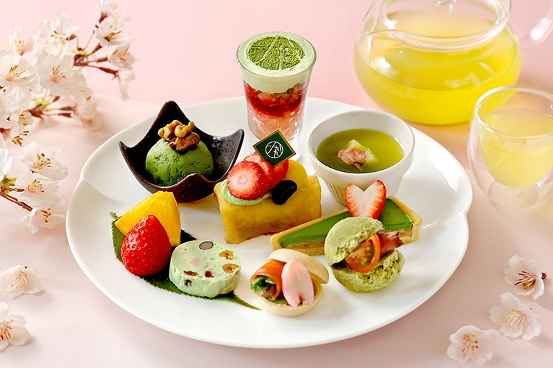 抹茶、煎茶、ほうじ茶、緑茶、碾茶を使った、料理長こだわりのお弁当で、お茶づくしなランチタイムをお楽しみください。