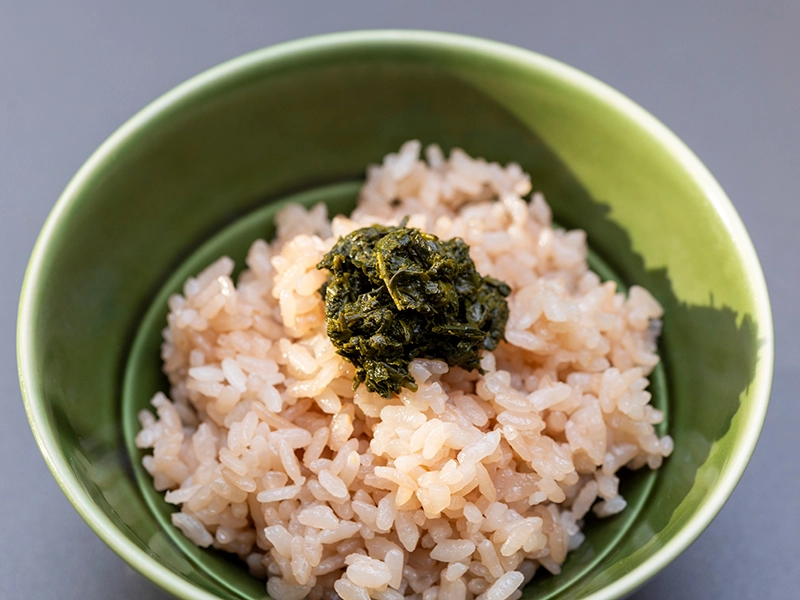 ②火を止め、ほうじ茶茶葉を入れ、蓋をして1分待つ。