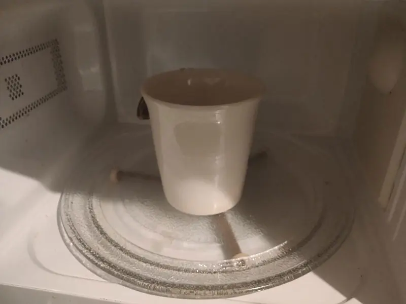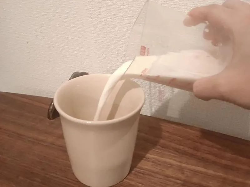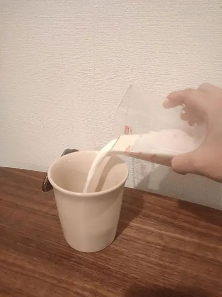 - 牛乳を計量カップで150mlはかり、耐熱のマグカップに注ぎます。