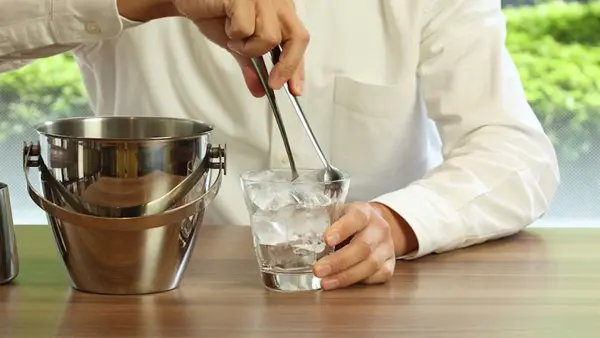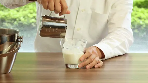 ④グラスに牛乳と砂糖を入れて溶けるまで撹拌します。