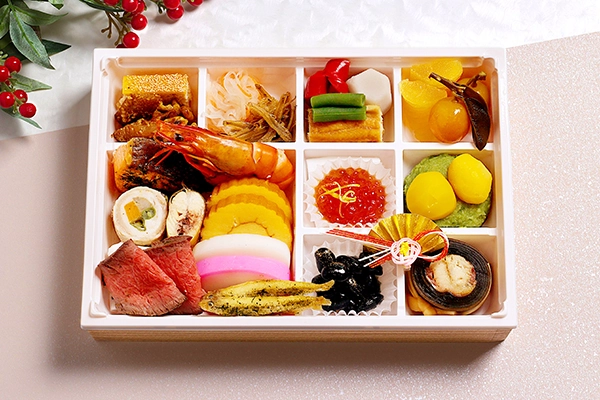 10品の“お茶おせち”を含む20品のおせちを1人前ずつ盛り付けた「1899謹製おせち」。確かな腕を持つ職人の本格おせちを、ご自宅でご堪能ください。
