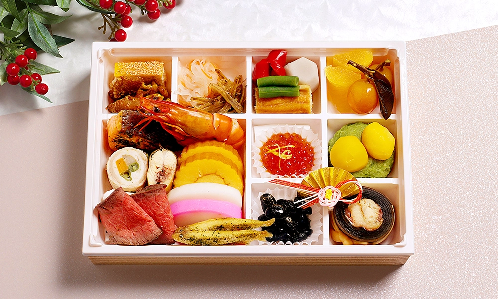 季節感を大切にし、新鮮で上質な食材を使用しています。各料理には、その年の吉を呼び込む意味が込められており、美味しさだけでなく、縁起の良さも感じられます。