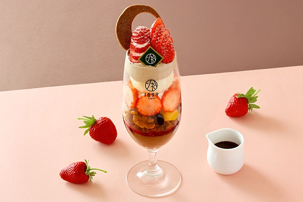 いちごを贅沢に使用した、和紅茶のパフェ。