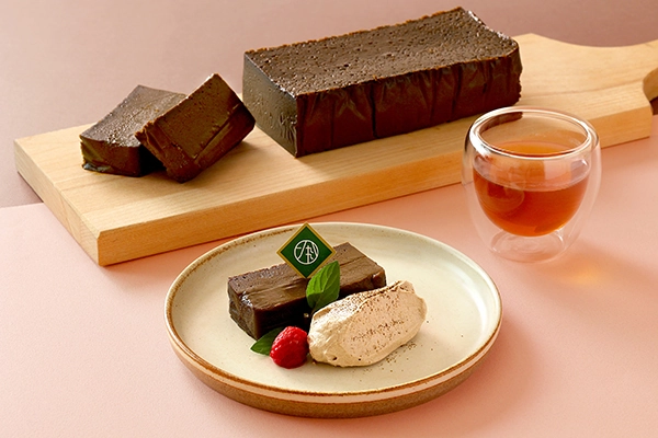 和紅茶の華やかな香りとチョコレートの濃厚な味わいを楽しめる、自家製の和紅茶テリーヌ。